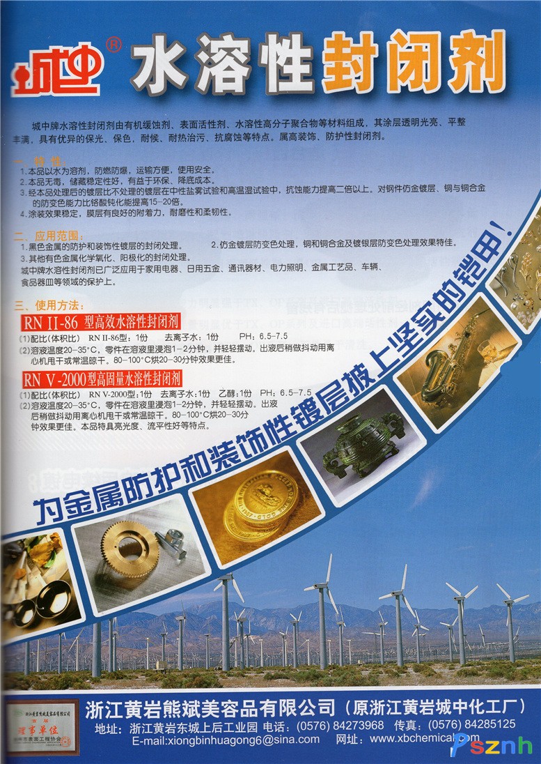 公司主营“城中”牌封闭剂,防银变色剂,主要有:RNⅡ—86型高效水溶性封闭剂、