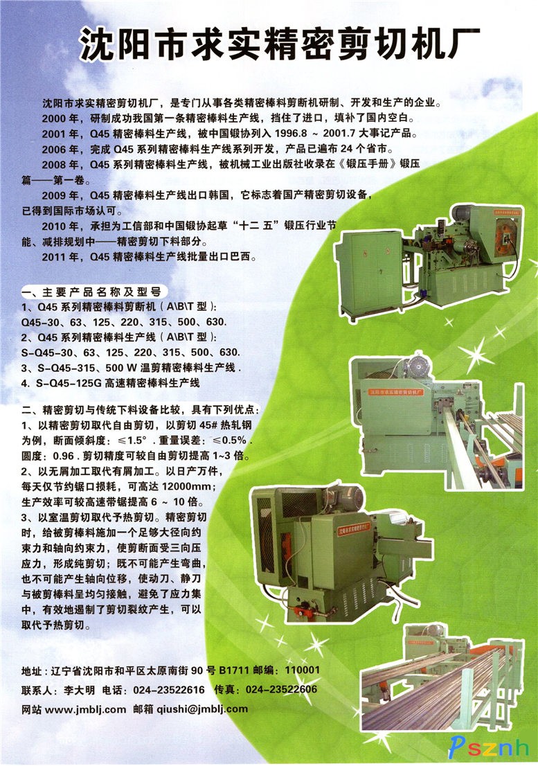 1. Q45A (B、T)系列精密棒料剪断机: Q45-30A (B、T) Q45-63A (B、T) Q45-125A (B、T) Q45-220A (B、T) Q45-315A (B、T) Q45-500A Q45-630A