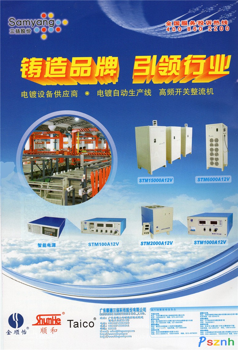 通信电源产品凭借过硬的品质长期服务于公安、三防、消防、远洋通讯等领域,市场覆盖全国各地;电镀电源在表面处理行业享有高效、节能、质量稳定的赞誉;全自动电镀生产线广泛应用于五金、塑胶、线路板、电子电镀等行业。全自动电镀生产线、半自动电镀生产线、手动电镀线、废气处理系统等产品均可根据客户要求设计、制造,并提供整厂交付服务费;拉链机械设备应用在金属拉链生产的企业,下游配套服装业、箱包业和体育用品耶的产品,产品较国外进口设备具有极强的价格优势,是同类进口设备的首选替代品。