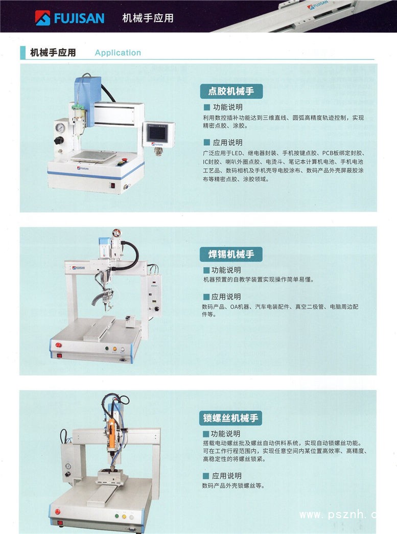 深圳市福士工业科技有限公司,是深圳市艾而特工业自动化设备有限公司的全资子公司,长期致力于工业机器人的研发及应用。该公司拥有一批有着多年自动化非标设计经验和多年实际工厂工作经验的专业技术人才,是一家高新技术型企业。福士工业以雄厚的技术实力和完善的客户服务体系为后盾,以重诺诚信、服务至上与客户保持长期合作。目前,该公司在焊接行业初露端倪,以集成为主要工作,以自动化为主要方向。公司通过不断努力,为客户提供满意的服务和优质的产品:单轴机器人、多轴多关节机器人以及多轴运动控制系统,共20多种产品,产品广泛应用于电子业、手机业、LED业、玩具业、汽车业、钟表业、纺织业、医疗器械、照明灯具、机械密封等行业中的点胶、涂胶、定位、装配、检测、搬运、切割、上下料、钻孔、焊锡等领域,具备很高的综合性价比,拥有广泛的市场发展前景。
