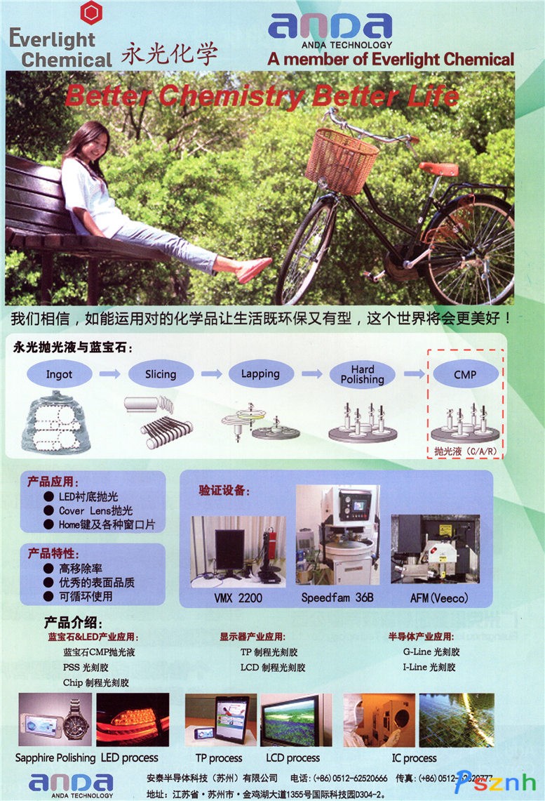 安泰半导体科技(苏州)有限公司是ANDA TECHNOLOGY PTE. LTD.和台湾永光化学集团在中国大陆的合资子公司。ANDA TECHNOLOGY PTE. LTD.成立于1997年,位于新加坡国际大厦,主要从事电子材料的研发、生产和销售,主营半导体、TFT、LCD、LED、太阳能,台湾永光化学创立於1972年,主要从事化学工业-从事高科技化学工业之生产、研发及内外销;在市场上, 永光化学名列世界五大色料厂之一,色料产销为亚洲第一位。除稳健在色料产品发展外, 现今已逐步研发多元且高科技化学产品, 如特用化学、电子化学、医药化学及奈米材料等。