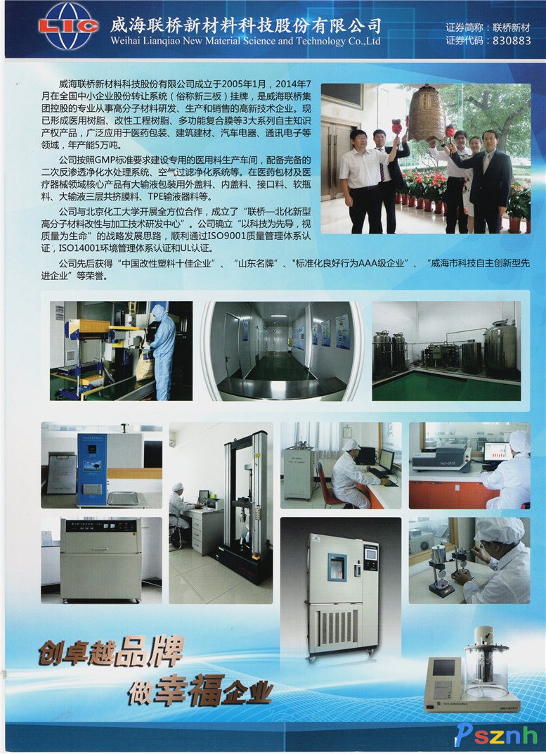 威海联桥新材料科技股份有限公司 医用树脂 外盖料 接口料 软瓶料