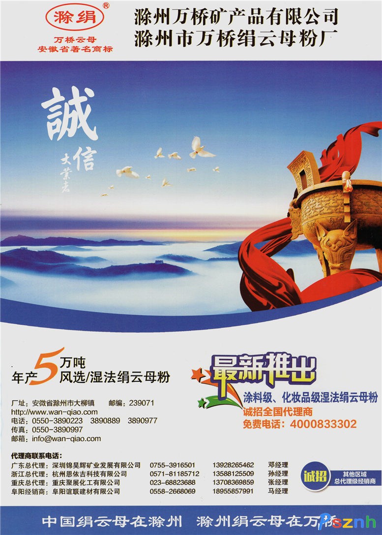 滁州市万桥绢云母粉厂产品主要有绢云母粉、产品广泛应用于防腐油漆、涂料、工程塑料、橡胶、合成材料、耐火材料、化妆品、电子绝缘材料等行业,稳定的产品质量和优良的性价比赢得市场的广泛认可。