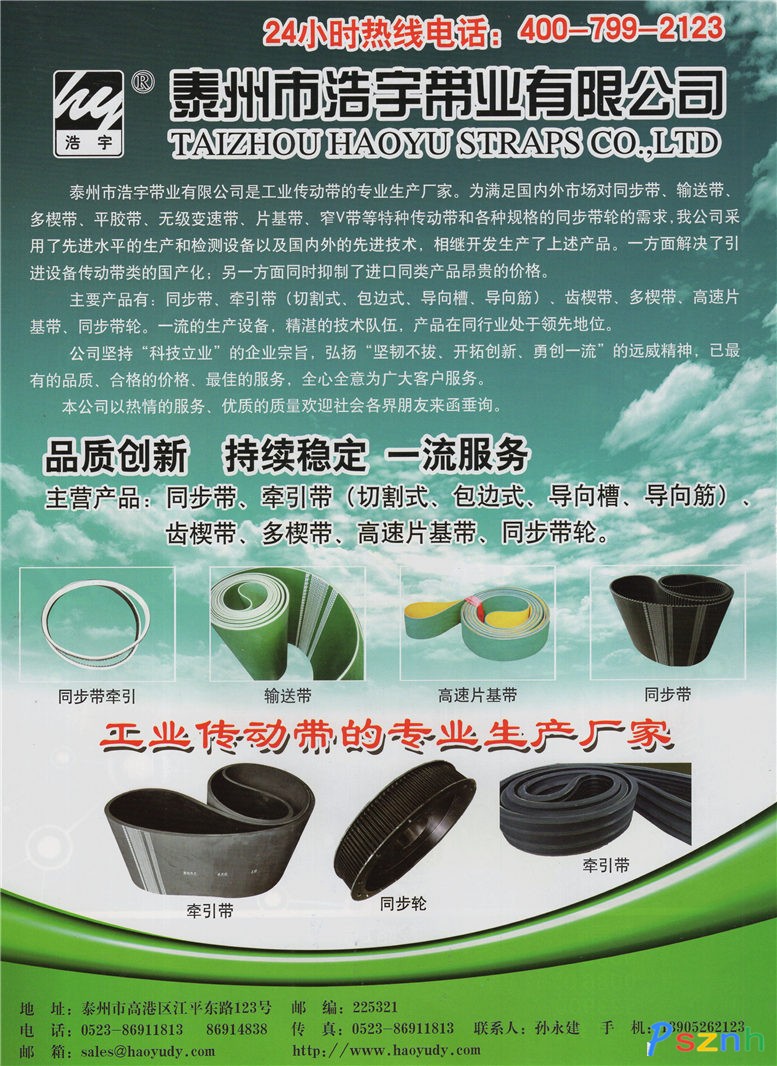 泰州市浩宇带业有限公司 同步带 牵引带 多楔带 片基带