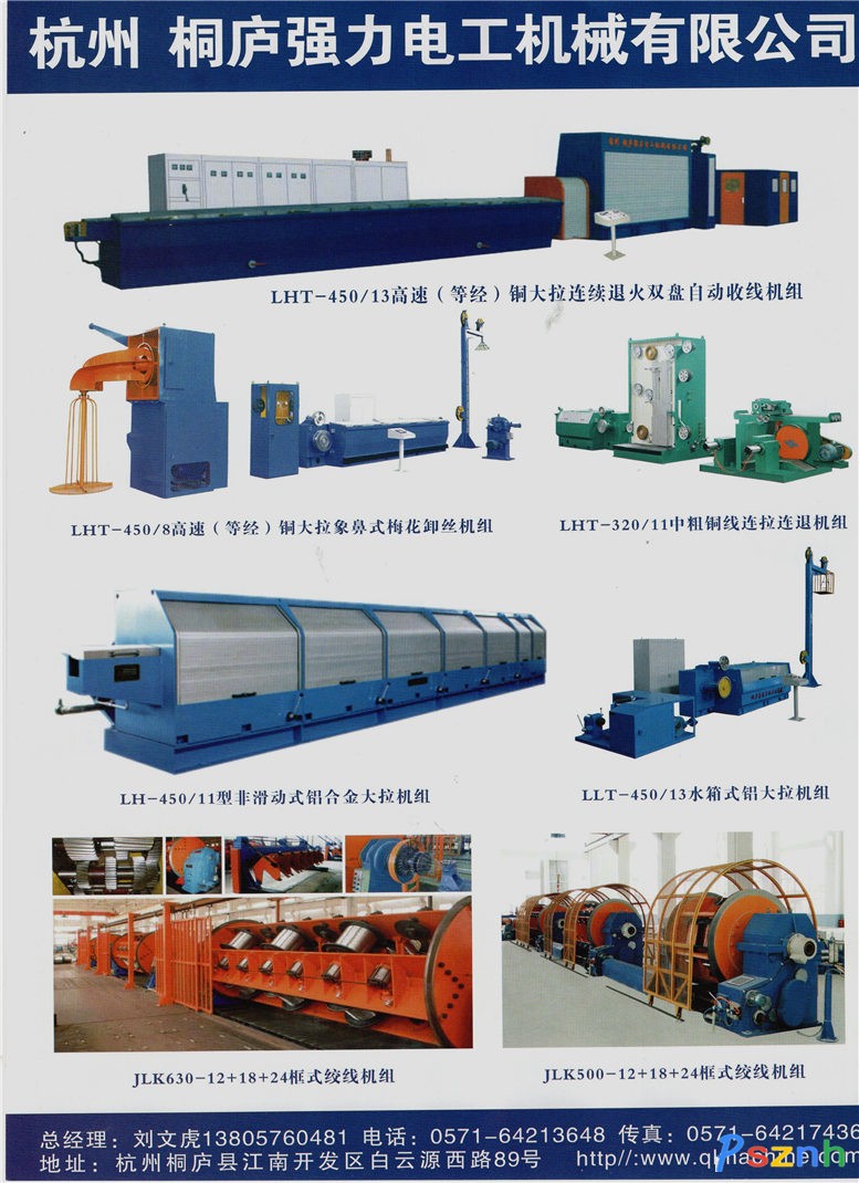 本厂是从事研究、设计、制造为一体的拉丝机专业制造企业,建厂已近20年的历史,生产干式、湿式各种系列规格拉丝机,倒立式、象鼻式自动卸丝机,钢丝热处理收线机等设备,使用高、中、低碳钢丝、不锈钢丝的生产线;生产有色金属铜铝线大拉机、中拉、小拉、细微线的拉丝机,使用于邮电通讯、电力电线电缆、漆包线生产行业。(生产GZ-10A、7A带肋钢成型机组、调直剪切机,是建筑材料加工的理想设备。) 本厂遵循“科技为生产力”的指导方针,凝聚着高、新科技人才,不断开发新一代产品,连年多次打入国际市场。本厂己通过ISO9001质量认证,是浙江省实力劲的拉丝机制造商之一。