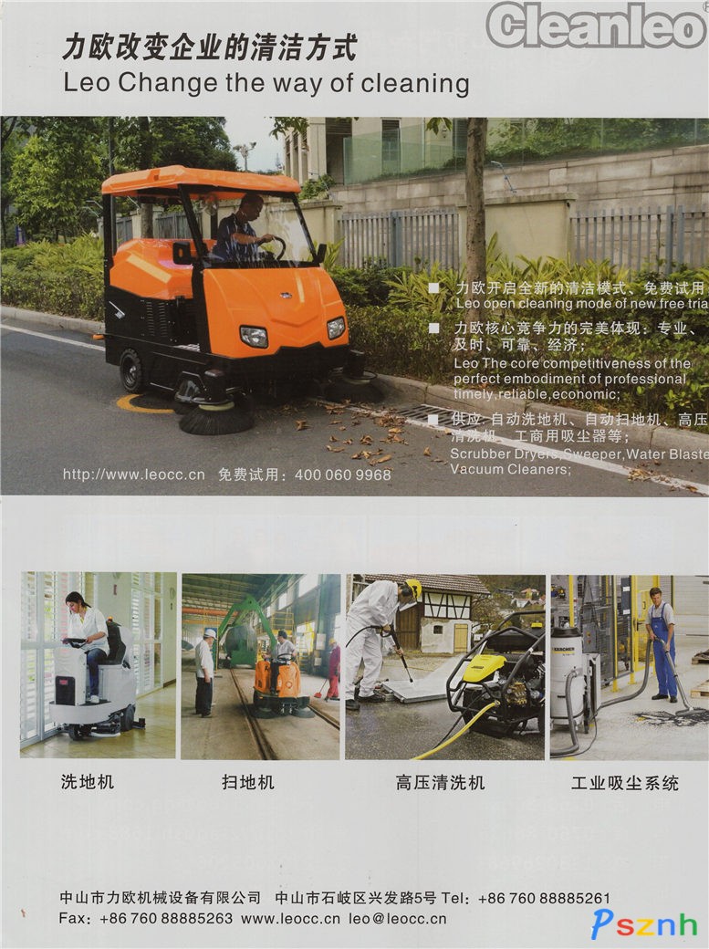 - 中山市力欧机械设备有限公司、产品包括各种大中小型的清洗机、洗地机、扫地机冷热水高压清洗机,全自动洗地机、全自动扫地机、驾驶式洗地机驾驶式扫地机、手推式扫地机、手推式洗地机,工商业用的强力吸尘、吸水机及防爆吸尘机,石材翻新晶面机,地毯清洗机,工业及酒店用清洁剂系列等。我们始终以最优质的产品和服务提供给各行各业客户群体。