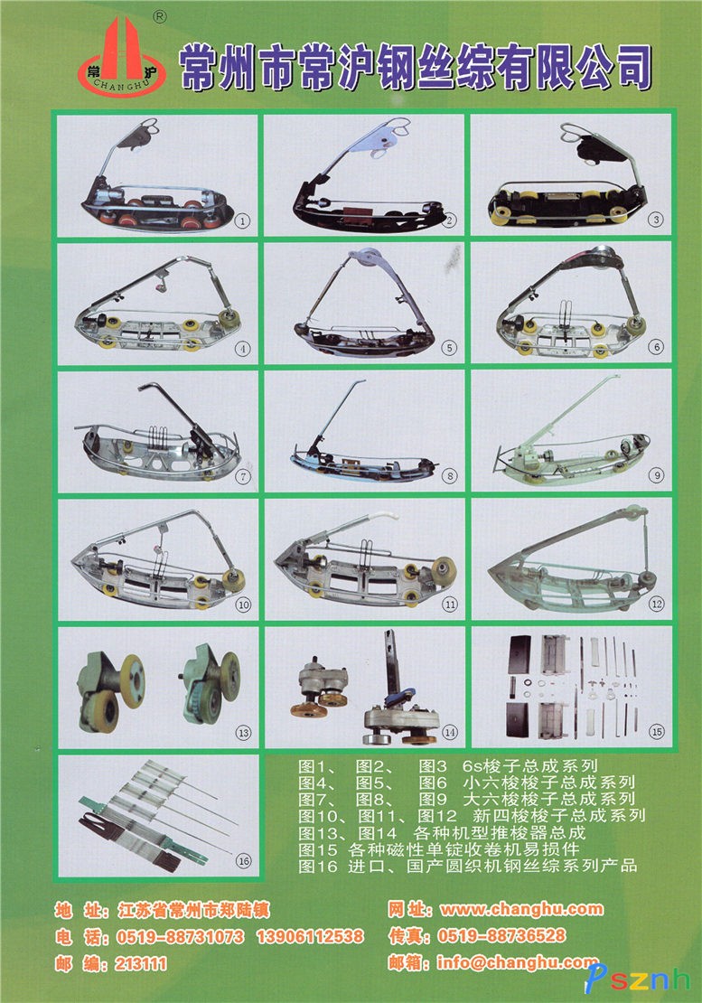 公司生产《常沪》牌塑料编织机专用钢丝综,已有二十多年历史。随着我国塑编行业的蓬勃发展,我公司已发展成为国内规模最大、品种最全、销量最大的知名企业。由我公司率先推出的合金综眼、刚玉综眼、尼龙复合钢丝综在国内园织机制造行业中的配套额几乎达到了百分之百,并深得广大用户信赖。同时各类进口园织机、织带机专用钢丝综已成为取代进口之最佳选择。