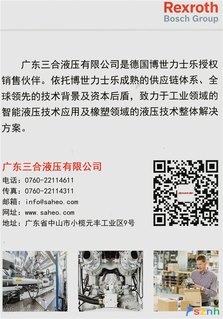 广东三合液压有限公司是徳国博世力士乐授权销售伙伴。依托博世力士乐成熟的供应链体系、全球领先的技术背景及资本后盾, 致力于工业领域的智能液压技术应用及橡塑领域的液压技术整体解决方案。