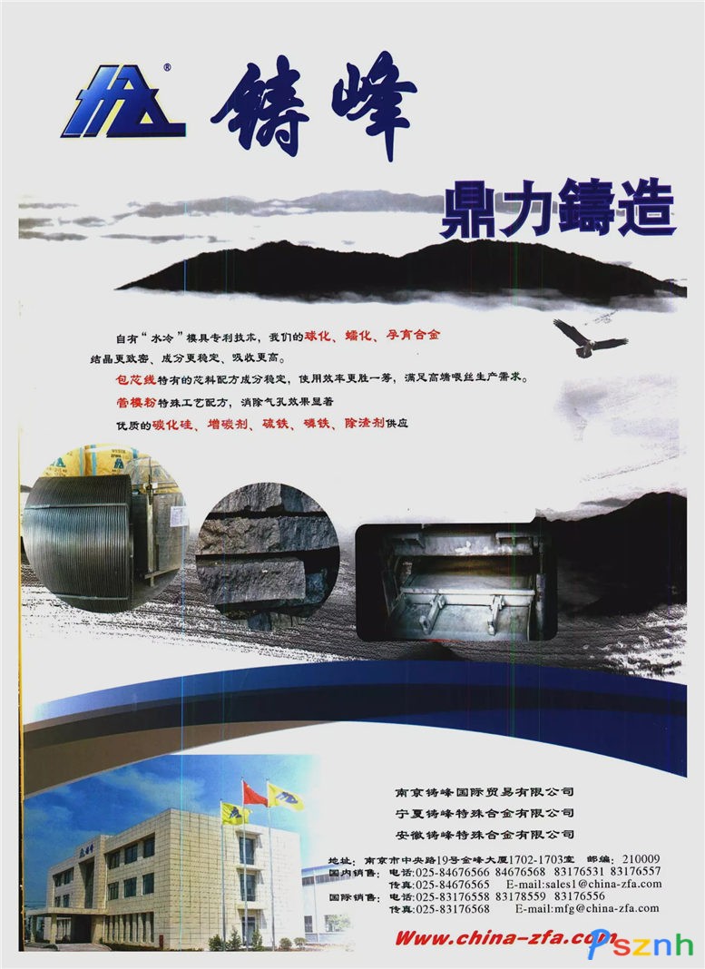 我司产品成分控制严格,球化合金在使用中反应平稳吸收好;孕育合金品种齐全,满足球铁、灰铁、蠕墨铸铁以及合金铸铁的生产需求;独特配方的管模粉对消除铸管气孔缺陷具有显著的效果。
