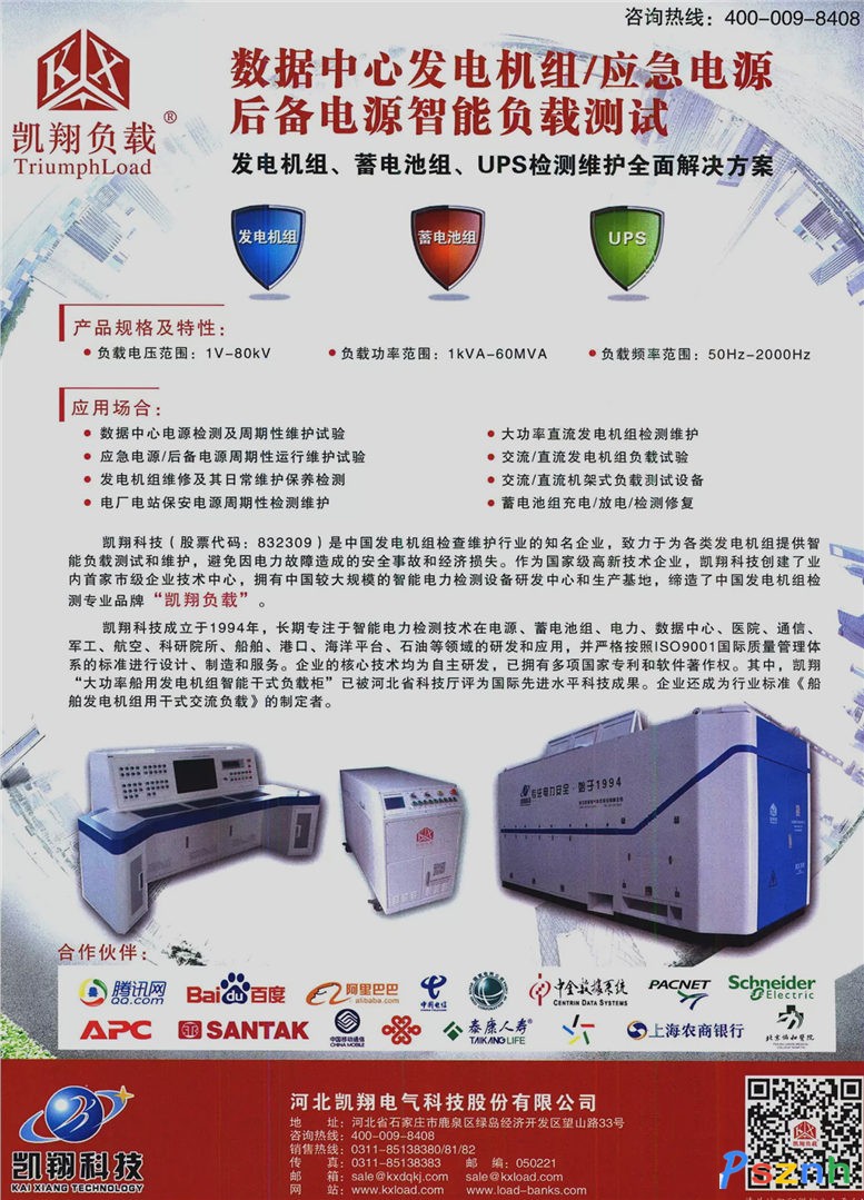 凯翔科技主要制造以智能干式负载为代表的大功率电源检测维护设备,产品可为发电机组、蓄电池组、UPS等大功率电源提供负载测试,依据国家、行业标准检测各类电源的稳定性、可靠性,对电源是否符合标准、能否出厂、能否通过验收、是否达到使用条件进行科学评估。