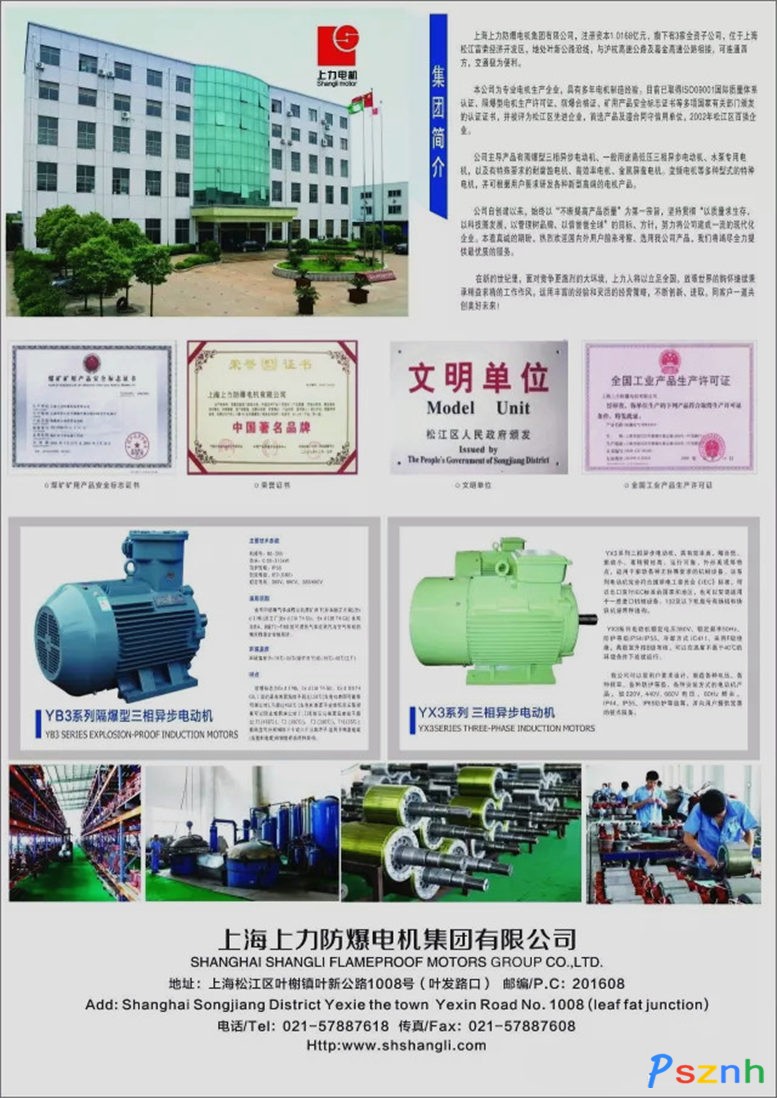 本公司为专业电机生产企业,具有多年电机制造经验。目前已取得ISO09001-2000国际质量体系认证、3C认证、隔爆型电机生产许可证等多项国家有关部门办法的认证证书,并被评为松江区先进企业,首选产品及遵合同守信用单位,2002年松江区百强企业。