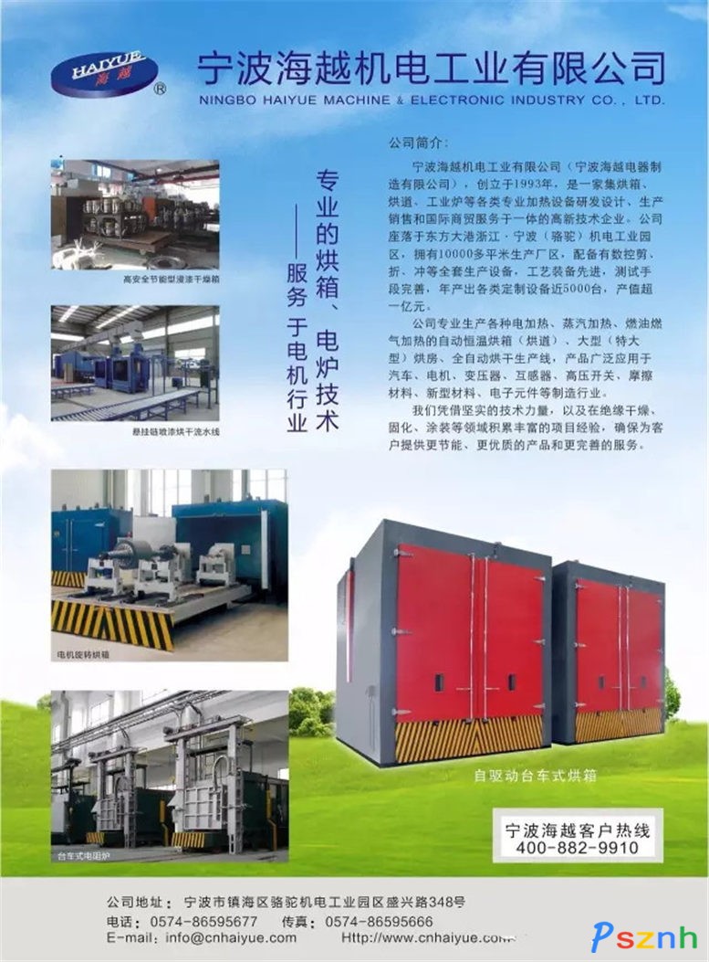海越机电公司的主导产品有:各种电加热、蒸汽加热、燃油燃气加热的自动恒温烘箱(烘道)、大型(特大型)烘房、全自动烘干生产线等,产品广泛应用于应用于汽车、电机、变压器、互感器、高压开关、摩擦材料、新型材料、化工医药、电子元件等制造行业。