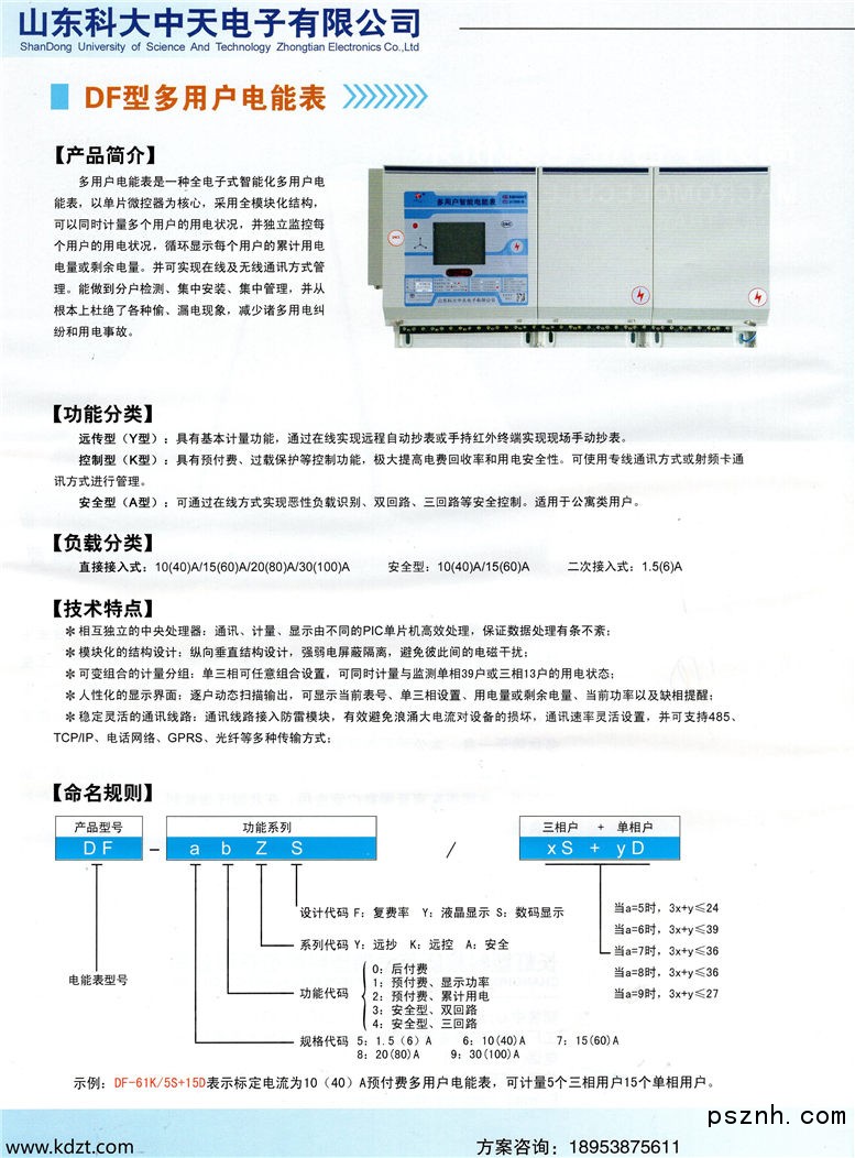 山东科大中天电子有限公司 多用户智能电表 多用户电能表 预付费电能表