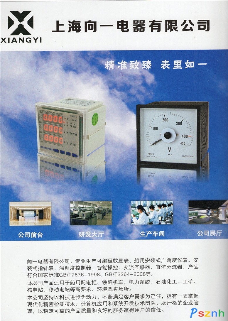 。公司已全面通过ISO9001质量管理体系,一贯坚持“以质量求生存,以科技 求发展,以管理出效益”的经营方针,坚持“品质第一,服务至上”的经营宗旨,不断开拓和创新与社会各界朋友真诚合作。 向一电器有限公司,在此由衷感谢 各位用户及关心向一事业的同志 对本公司的一贯支持。