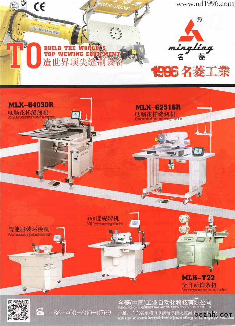 2006年成立正南(中國)精密自動化設備有限公司,主要産銷自主品牌名菱MLK-系列電腦 花樣縫紉,是目前同類産品中较早獲得國家縫紉機質檢中心質量達標的産品之一。我們率先攜同 中國縫紉機質檢中心,中國縫制機械標准化委員會,定制中國電腦花樣縫紉機國家標准。已 通過ISO9001:2008國際質量管理體系及CE認證,完全自主研發的名菱MLK-G控制系統以優 良的品質,穩定的性能、高新的技術含量、超前服務及合理的價格,博得全球客戶的壹致青 睐。