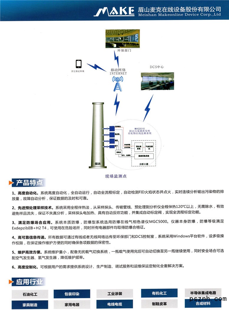 麦克在线主要从事广泛应用于石油、化工、天然气、煤炼油、冶金、电厂、制药、环保等行业专用的在线分析仪器仪表及在线分析成套等配套产品,详细如下: