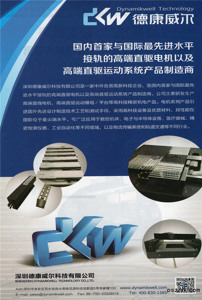 深圳德康威尔科技有限公司是一家中外合资高新科技企业,是国内首家与国际最先进水平接轨的高端直驱电机以及高端自动化设备专业制造商。公司主要研发生产直驱电机、精密直驱运动平台、高端自动化设备等高科技精密机电产品。电机系列产品引进国外先进设计制造技术工艺和测试手段,采用高科技设备及优质材料,其性能在国际位于最尖端水平。可广泛应用于数控机床、电子与半导体设备、医疗器械、精密检测仪器、工业自动化等不同领域,以及物流传输系统和轨道交通等不同行业。