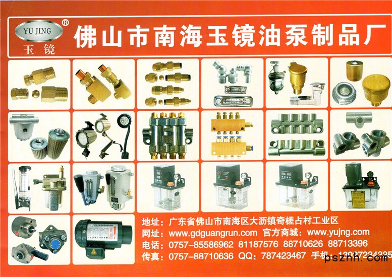 佛山市南海玉镜油泵制品厂是专业生产销售:手动润滑泵、手压润滑泵、机床工作灯、磨床电磁泵、手拉润滑泵、手动黄油泵、1升半自动电动润滑泵,1升数显全自动电动润滑泵、1.5升半自动电动润滑泵、 1.5升数显全自动电动润滑泵、2升半自动电动润滑泵、2升数显全自动电动润滑泵、3升半自动电动润滑泵、 3升数显全自动电动润滑泵、4升半自动电动润滑泵、4升数显全自动电动润滑泵、电动油脂泵、电动黄油泵、 机床润滑泵、机床冷却泵、定量分配器、 加压式分配器、可调分油器、A型单面分油器、AE型双面分油器、 弹簧软油管、弹簧护套、尼龙管、胶管、铝管、铜管、万向曲管、滤油器、滤油网、油面计、加油口盖、压力表开关、快速夹头、注塑机分水器、直角油杯、直通油杯、针阀式油杯、旋盖式铜油杯、六角油标、 单向阀、油管铜接头、铜卡套密封圈、 压紧铜螺母接头、直通铜接 头、直角铜弯头、平面直角铜接头、 活动直角铜弯头、单向直通铜接头、单向直角铜弯头、铜油塞、油管铜衬套、铜三通接头、铜黄油 嘴、润滑铜接头及各种润滑附件等。
