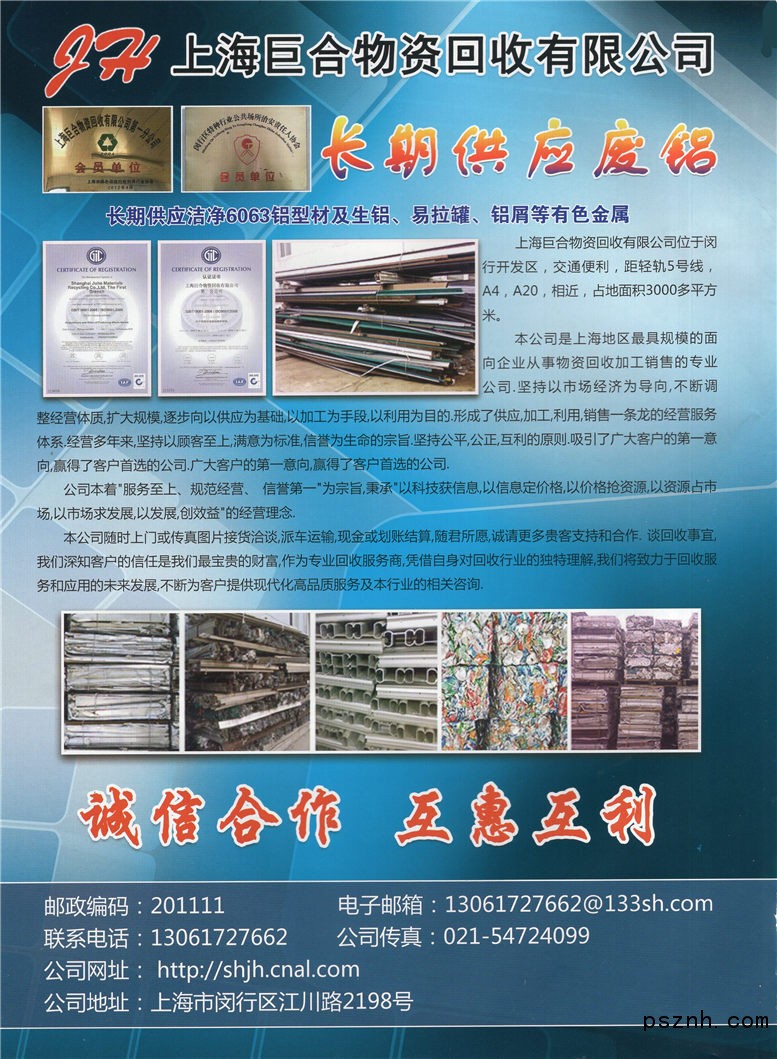 本公司是上海地区具规模的面向企业从事物资回收加工销售的专业公司.坚持以市场经济为导向,不断调整经营体质,扩大规模,逐步向以回收为基础,以加工为手段,以循环利用为目的.形成了回收,加工,利用,销售一条龙的经营服务体系.经营多年来,坚持以顾客至上、诚信经营、顾客满意为标准,信誉为生命的宗旨.坚持公平,公正, 互利的原则.吸引了广大客户的意向,赢得了客户的公司.