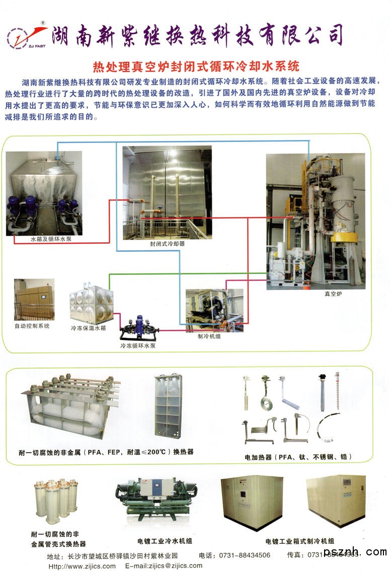 公司在表面处理、涂装、热处理、医药化工等行业,致力于表面处理涂装生产线、热处理生产线的整体规划、工艺设计及单各种辅助设备的制造;产品包括生产线上的制冷机组、电加热设备、防腐蚀换热器、槽体、行车、PLC自动控制系统、过滤系统,酸雾除尘、废水处理、纯水设备、通风及废气处理设备、大型的表面处理生产线及真空炉循环冷却水设备,上述产品广泛应用于我国航空、航天、兵器、电子(PCB)、交通、冶炼、表面处理、化工、医药、食品、大中专院校的仪器仪表行业中,发挥了积极的作用。