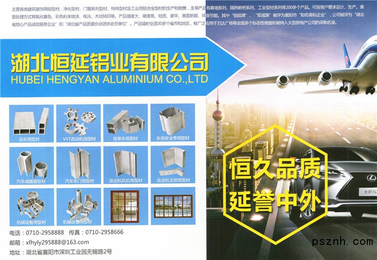 公司以质量创立品牌,以合理价格开拓市场,以信誉赢得顾客。公司引进国际国内先进的生产线和生产工艺,旨在打造华中地区新型的铝型材生产基地。