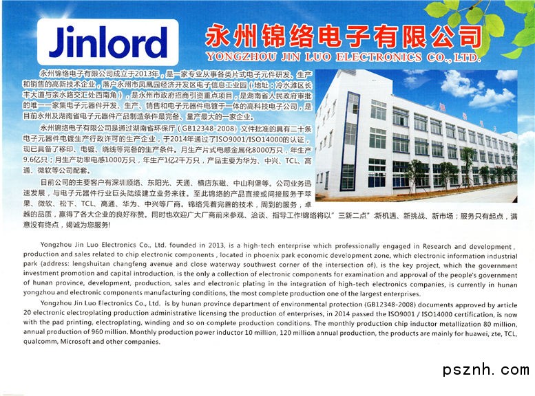 目前公司与深圳顺络战略合作。公司业务迅速发展,与电子元器件行业巨头企业陆续建立业务来往。至此我们的产品直接或间接服务于苹果、微软、松下、TCL、高通、华为、中信等厂商。我们凭着完善的技术,周到的服务,卓越的品质,赢得了各大企业的良好称赞。同时也欢迎广大厂商前来参观、洽谈、指导工作!公司秉承“以品质为生命,创新、提质、高效、诚信、双赢”,向全球客户提供最优质服务的经营理念。