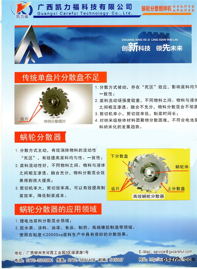 凯力福公司积极实施品牌战略,坚持科技创新精神,专注于分散/搅拌/真空混合设备的专业制造与研发,愿与客户真诚沟通,不断完善我们的产品设计与售后服务体系,通过精细的产品和至诚的服务赢得国内外广大客户信任与支持。热诚欢迎国外内客户和朋友到我公司莅临指导。