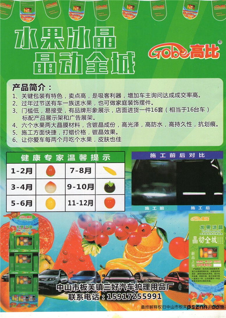 企业里程碑:创办人李总毕业于广东省科学技术学校,化工专业。于2006年从事汽车精细化工产品行业,经过多年公司发展、转型,新的企业“三好汽车护理用品厂”于2012年5月成立,并引进美国“Gobe高比”汽车美容养护产品品牌和相关技术在国内生产灌装。 企业寓意:品质好、服务好、信誉好。 企业产品:“Gobe高比”汽车美容养护四大系列产品:(汽车清洁美容系列)、(汽车研磨抛光系列)、(车蜡、釉系列)、(镀膜系列)。 基准使命:为顾客创造价值、为社会创造繁荣、为企业创造效益、为员工创造机会。 基准目标:致力将三好企业发展成为同行业的一流企业。 质量方针:三好企业、品质卓越。 服务理念:客户和员工是企业生命所在用心、尽心、细心、诚信。 管理理念:以人为本、科学管理强调内部沟通、发挥团队精神。 经营理念:坚持“品质好、服务好、信誉好”三好经营方式,稳步求发展、发展要稳步。 企业业务组成: 生产GOBE高比品牌产品 OEM事业部 我们本着“品质好、服务好、信誉好”的宗旨,希望和广大同行朋友一起携手共同发展,达到共赢!