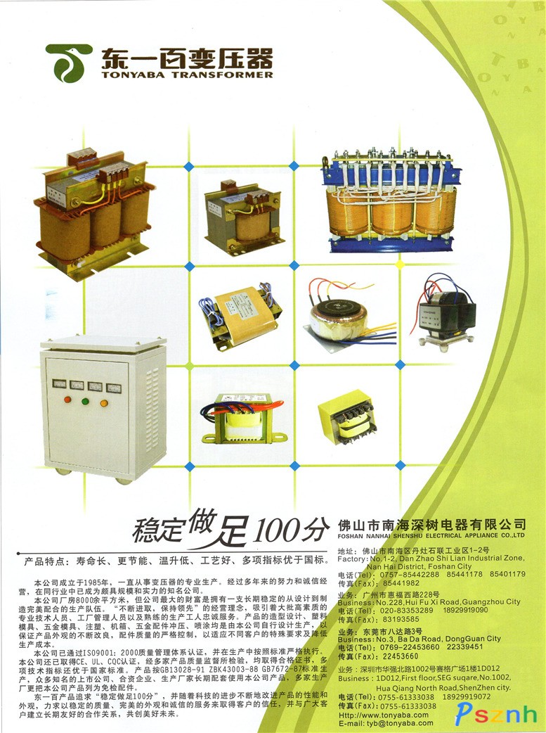 经过多年努力,拥有了大批高素质的技术人员,熟练的生产工人。从产品的造型设计、塑料模具、五金模具、注塑、机箱、五金配件冲压、喷涂均是本公司自行设计生产,以保证产品外观的不断改良、配件质量的严格控制、适应不同客户的特殊要求及降低生产成本。由于质量稳定,受到广大客户的欢迎,并与客户建立了长期友好的合作关系,共同前进,不断发展。现主要生产各种变压器。