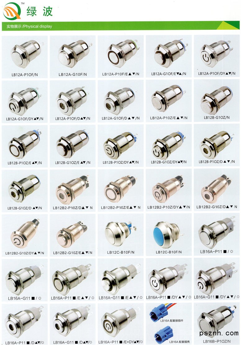 公司产品有:直径中qp8mm、q10mm、q12mm、qp16mm、qp19mm、qp22mm、q25mm、q30mm、q40mm系列金属按钮开关。广泛应用于各类控制台、控制箱(柜)、配电箱(柜)及仪表箱(柜),家电电器,安控系统等。我们的产品已取得CE认证证书。