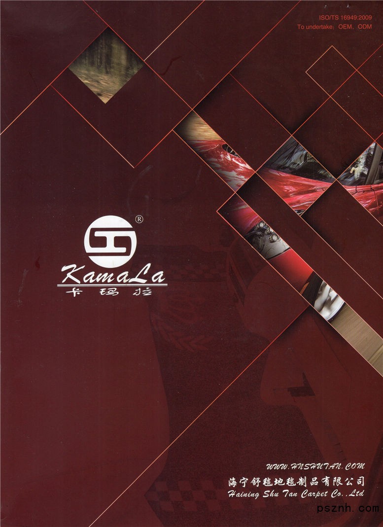 海宁舒毯地毯制品有限公司,东临上海150km,西至杭州20km,杭甬以及沪杭高速贯穿而过,交通便捷。 HAINING SHUTAN CARPET CO ., LTD , east to shanghai about 150km , west to hangzhou about 20km , hangyong and huhang high way cross haining, so the company location is convenient transportation . 公司创始人94年进入地毯行业,直至2008年成立海宁舒毯地毯制品有限公司。 The boss has entered into carpet industry from 1994 , and till 2008 he established Haining Shutan Carpet Co., Ltd. 海宁舒毯是一家集研发,生产,销售一体的专业汽车地毯生产厂家。 Haining shtuan is a carpet manufacturer that focus on designing、produce、and selling. 注册资金为650万元,员工人数30余人,厂房占地7000平方米。 Registered capital is 6,500,000 RMB,more than 30 people in factory and built up a 7000 square meters. 公司目前拥有一整套完整的复合设备,能同时复合PVC、TPR、高密度海绵,无纺火焰底毯等复合材料。 Shutan has a complete compound machines which can compound PVC /TPR/ SPONGE/FIRE BLANKET backing . 公司还拥有电脑数控激光切割机,更保证了产品的标准化生产,产品间做到零误差的承诺。 Shutan has laser cutting machines which assure the standard produce and zero error between goods. 毯面采用丙纶、尼龙材质的多种形式的面料及颜色来满足不同客户的需求,同时承接OEM及ODM。 Shutan has many different materials patten of pp /nylon and colors to satisfy customers requirement , accepting OEM and ODM . 并且公司的产品通过德国TUV环保检测,ISO9001国际质量管理体系认证,以及香港绿叶认证。 The carpets also through Germany environment test TUV 、ISO9001 and HK green certification. 公司始终坚持安全、环保、高质量的标准生产,为中高端汽车提供优质的产品,产品远销日本、美国以及中东等国外市场。 Shutan insists on safty/environmetal protection/high quality producting , suppling high quality mats for mid-high-end customer , exporteding to Japan, the US and the Middle East and other domestic and international market . 并与国内实力雄厚的公司有密切的业务往来。合作品牌有:福客思.鑫宏宝.盛禧宝龙.尼罗河.博世快修.......等等 And establish business with some large powerful company . 公司秉承用心做产品的经营理念,为客户提供安全,环保,舒适的汽车地毯而努力。 Shutan holds the intentions of well doing goods , trying best to supply safty/environmental protection /comfortable products .