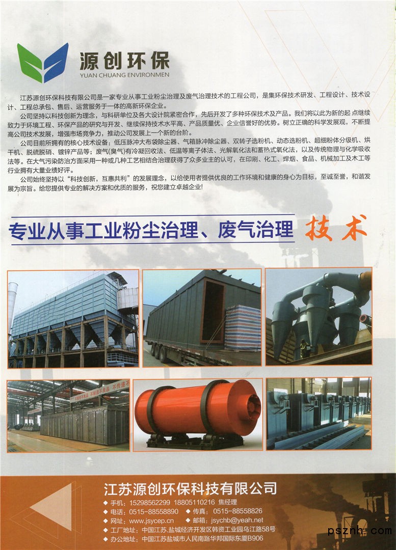 公司目前所拥有的核心技术设备:双转子选粉机、动态选粉机、超细粉体分级机、烘干机、脱硫脱硝、镀锌产品等;废气(臭气)有冷凝回收法、低温等离子体法、光解氧化法和蓄热式氧化法,以及传统物理与化学吸收法等。在大气污染防治方面采用一种或几种工艺相结合治理获得了众多业主的认可,在印刷、化工、焊烟、食品、机械加工及木工等行业拥有大量业绩好评。
