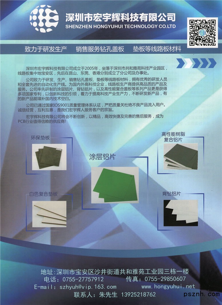 深圳市宏宇辉科技有限公司成立于2005年,位于华南线路板企业集中地------深圳市宝安区沙井镇。本公司一直专注经营、生产、开发钻孔盖板、垫板,从基础产品到高新技术产品,全面满足客户的需求,同时秉承“诚信经营,互惠互利”的经营宗旨,坚持以控制成本费用来谋求利润,以提高管理服务水平来树立形象,成为了客户值得信赖的合作伙伴。