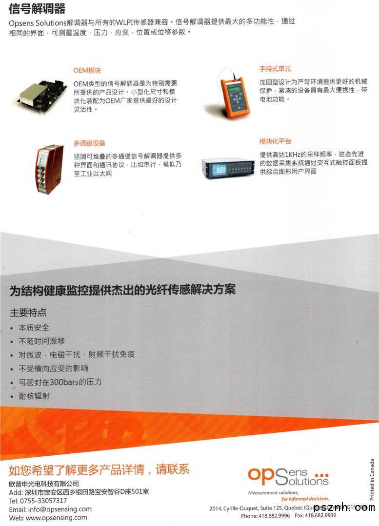 欧普申光电科技有限公司(OPT)是一家专业从事光电技术的高科技公司,致力于为客户提供专业和完善的光纤传感解决方案。我们的业务包括光纤传感、光谱分析、薄膜测量、聚合物识别红外光谱仪等光电测试产品。我们的销售团队具备专业技术背景,在光电子领域有丰富的销售经验,为客户提供强大技术支持。    公司坚持一切为了客户、专业专注、服务至上的经营理念,通过与客户的及时沟通,全面了解客户的需要,不断提升服务的质量,保障客户的最大利益。我公司长期致力于引进全球领先的技术和产品,全力为国内用户提供支持和帮助,以满足不同客户的特殊需求。