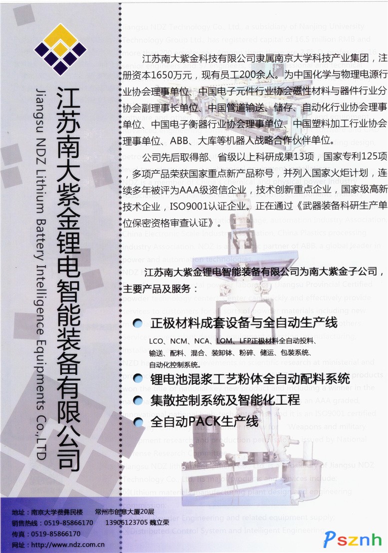 江苏南大紫金科 技有限公司是由南京大学科技实业集团公司和一批技术精英联合组建的高科技股份有限公司。秉承“诚朴雄伟,励学敦行”的南大校训,以“荣誉、责任、挑战、卓越”为企业精神。致力于粉体自动化设备的开发与应用,为客户提供粉体配混和包装码垛整体解决方案。