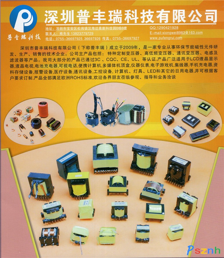 公司自成立以来,保持了快速发展的态势。在过去的几年里,普丰瑞全体同仁的共同努力下取得了良好的成绩,产品畅销国内外市场,30%产品远销欧美、澳洲、南美及亚洲等国家和地区,公司已拥有20条以上磁性元件产品生产线。变压器,电感年生产能力可达5千万只。 在技术和工艺上,普丰瑞紧跟行业技术前沿,兼收并蓄,拥有自己的工程研发团队。