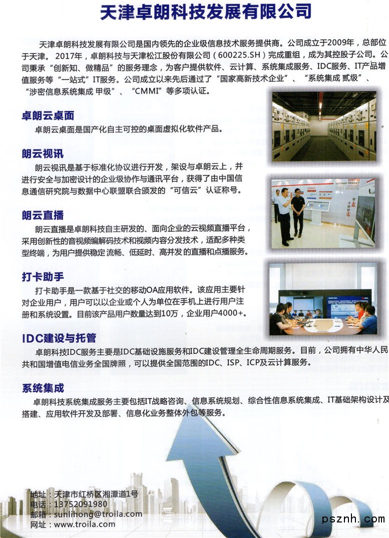 公司始终坚持自主创新和引进吸收再创新相结合的创新发展路径,建立了健全成熟的项目管理体系,获得了较完整的、高级别行业资质,先后完成了“国家高新技术企业”认定、“软件企业”评估、“天津市领军企业”认定、“信息系统集成及服务”二级认定、“电子与智能化工程专业承包”二级认定、“跨地区增值电信业务许可”申请、“ITSS信息技术服务运行维护标准”成熟度三级评估、“ISO9001、14001、20000、27001系列管理体系认证“等多项认定。卓朗正在自主研发、创新、服务等能力上不断增强。