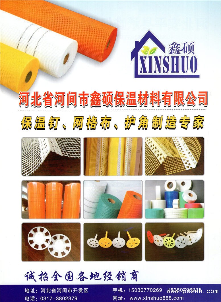 河间市鑫硕保温材料有限公司 (原恒达保温钉、网格布厂)是一家专业从事外墙保温钉,外墙网格布,护角等制品的生产企业。公司建于2003年8月,拥有现代化的厂房和先进机器及检测设备,是目前我国外墙保温材料行业中集生产设备、生产手段和技术为一体的企业。