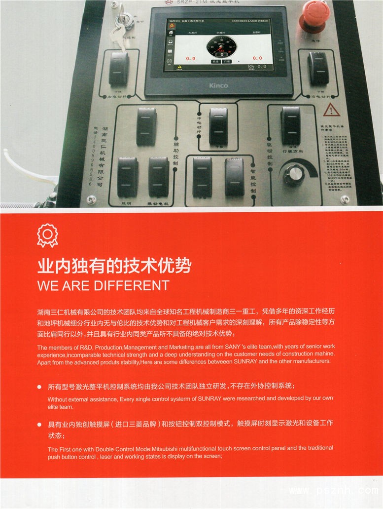 湖南三仁机械有限公司坐落于湖南省长沙市星沙经济技术开发区,是中南地区唯一的以激光整平机研发,制造,维修及保养服务的专业化公司。 三仁机械将以立足国内,放眼全球的战略化视野,充分挖掘国内国际市场潜力。源自三一重工的技术团队,有着地坪行业无与伦比的技术优势与创新能力,对自身产品质量和服务品质提高的同时,改进施工工艺,提高施工效率,节省人力成本,为地坪行业提供一站式全套地坪施工机械,以促进地坪行业的持续健康发展。
