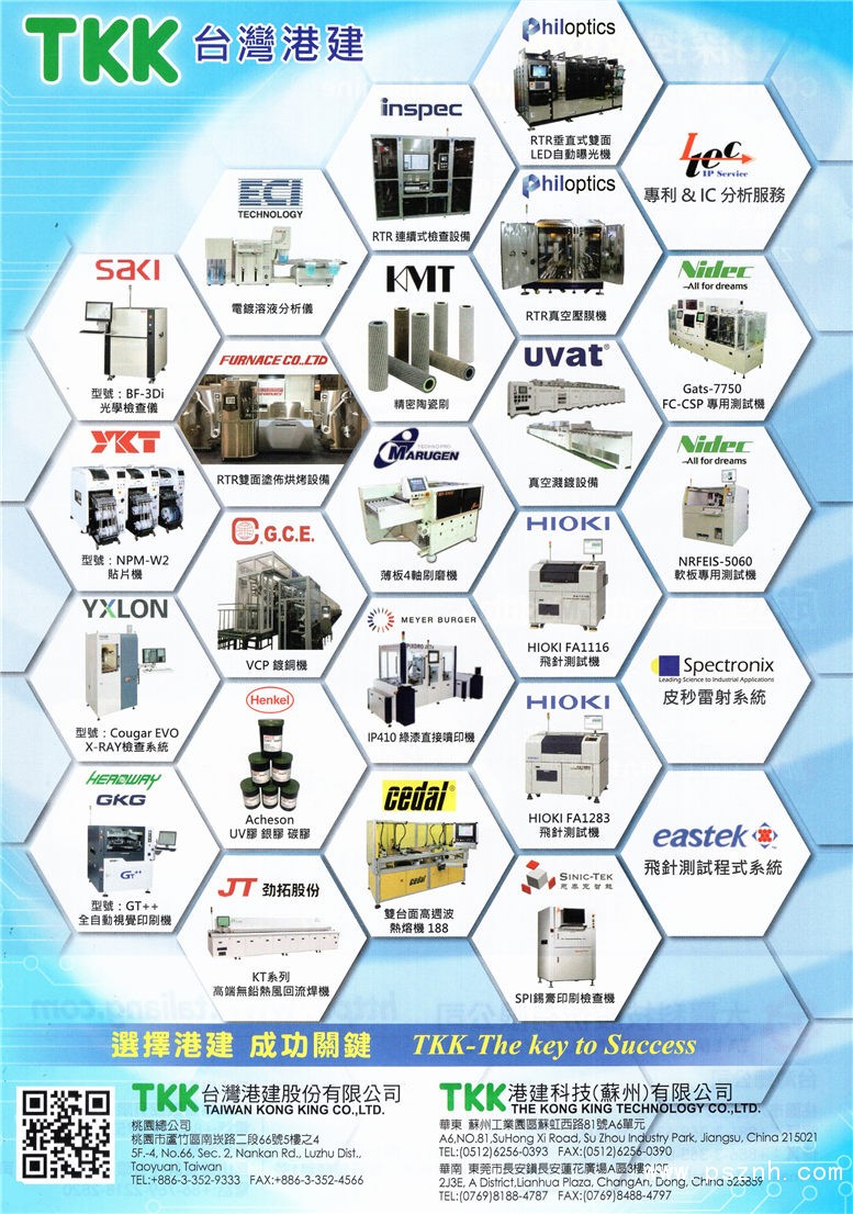 為順應產業脈動,積極開發更高階印刷電路板,半導體製程產品所必須使用 的相關設備與技術,同時也提供 3C 產業所需之高層次軟性印刷電路板的完整製造設備。更投入光電產業、化學塗料、精密測試等新產業領域的開發,以提供全方位服務。