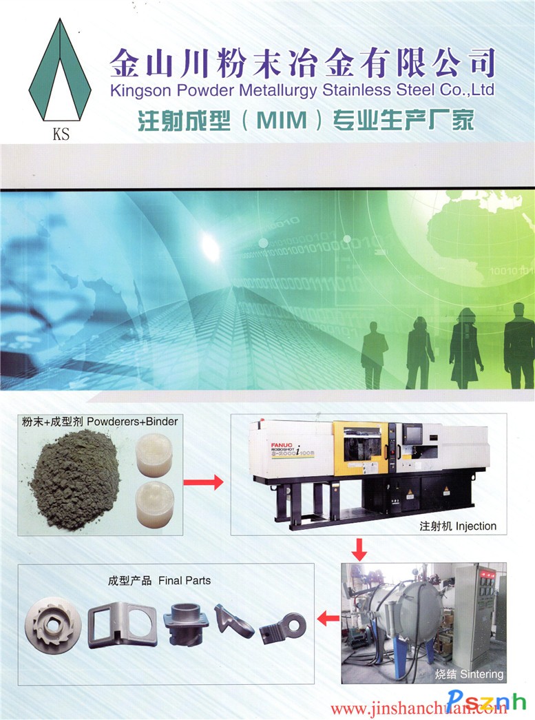 深圳金山川粉末冶金有限公司已通过ISO9001:2008质量管理体系认证, 是国内较早从事粉末不锈钢制品生产并拥有多项粉末冶金先进制造技术、特别是在制造复杂异型件和不锈钢高档抛光件上有着丰富的技术基础和生产经验的专业企业。本厂生产的产品材料覆盖粉末不锈钢300系列、400系列和17-4PH等牌号以及Fe-C系、Fe-Ni –C系、Fe-Ni-Cu-C系等铁基牌号。其力学性能和耐腐蚀性能与熔锻钢相当,且外观精美、可抛光性强。