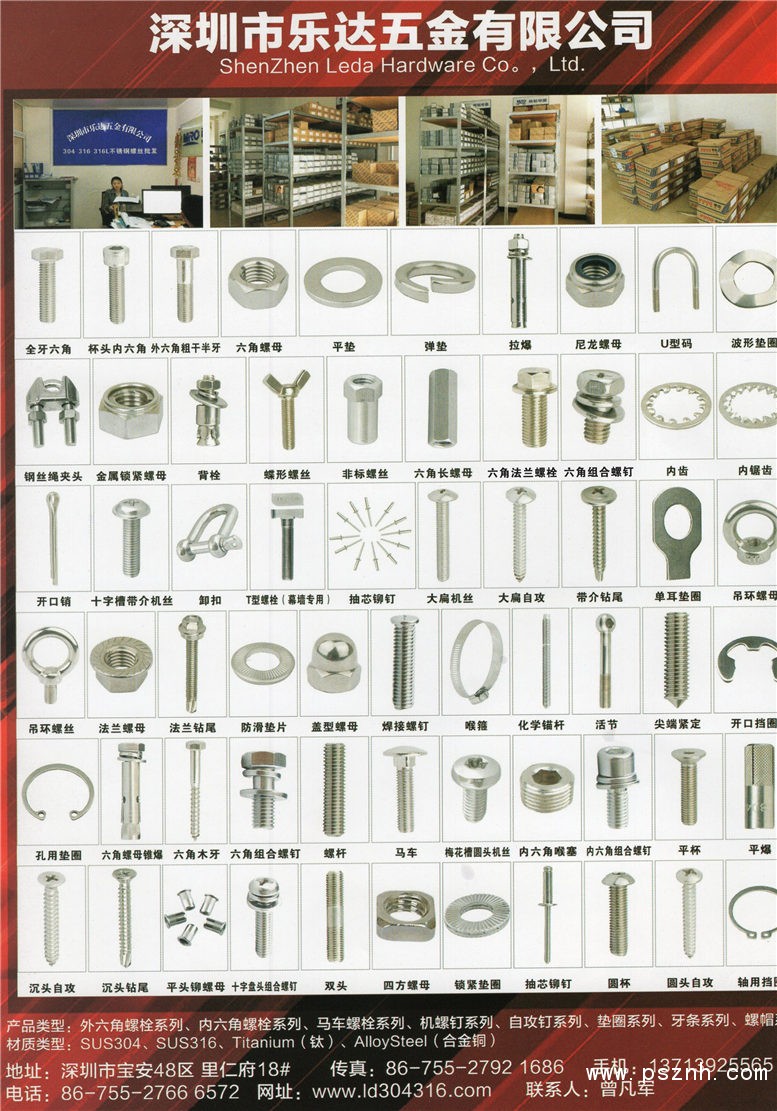 自成立以来,秉持为客户提供‘一站式采购’的理念,响应客户要求,为顾客提供了各种材料的高品质紧固件产品。品种包括SUS不锈钢螺丝、碳钢螺丝、合金钢螺丝、电子螺丝、铜螺丝、尼龙塑料螺丝及各类特种材料非标螺丝。俱体如下:SUS304、SUS316、 316L、310S、317L、321、630、631、2Cr13、1Cr13、904L、0Cr25Ni20、00Cr22Ni5Mo3N、0Cr17Ni4Cu4Nb、GH132、2205、2520、2507、660A、MONEL400、17-4PH、S32750、S32760、N7080、1.4539、1.4460、1.4462、C-276、B8、B8M、B7、B7M、L7、L7M、B6、B16、B637、2H、2HM、F51、F53、F55、25Cr2MoV、35CrMoV、42CrMoA、40MnB、40MnVB等。产品均符合相关国标(GB)、德标(DIN)、美标(ANSI/ASME)、日标(JIS)、国际标准(ISO)。