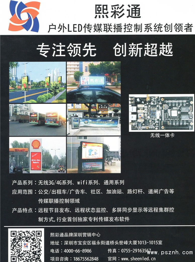 深圳熙彩通电子科技有限公司 车载传媒系列 路灯传媒系列 全彩条屏系列