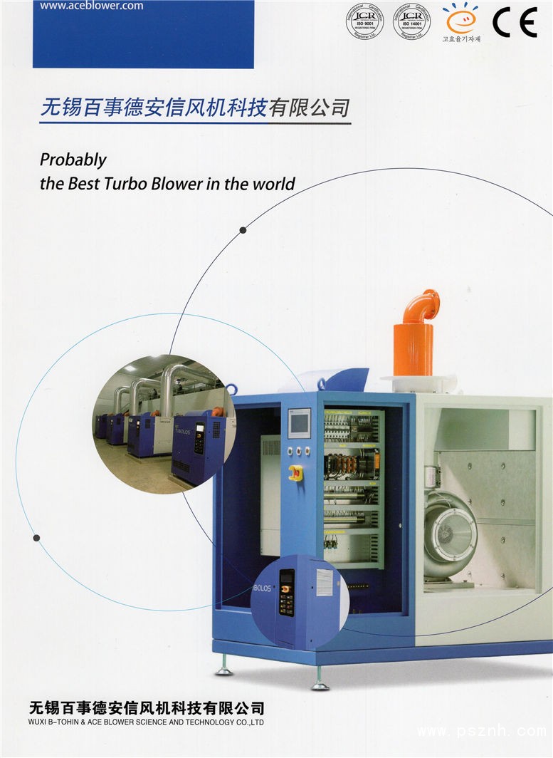 ACE是韩国一家空气悬浮离心式压缩机、鼓风机的专业研发、制造厂家;百事德是专注于鼓风机系列产品的开发、制造、销售、服务的综合性公司。百事德安信公司之ATB系列离心式压缩机是在韩国生产,整机进口的产品,采用空气悬浮轴承、精密铸造叶轮、超高速高效马达、国际知名变频器技术、由专业技术团队打造的一款高效节能环保型高速离心式空气压缩机。