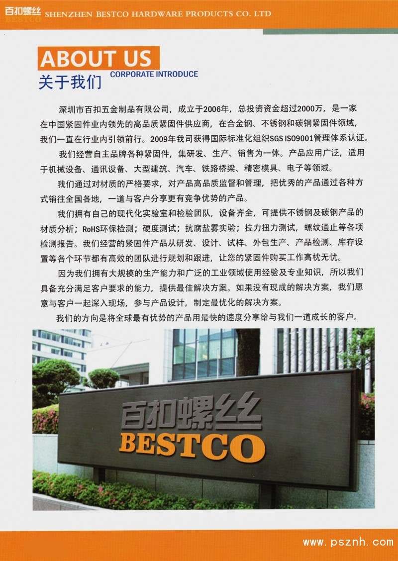我们经营自主品牌各种紧固件,集研发、生产、销售为一体。产品应用广泛,适用于机械设备、通讯设备、大型建筑、汽车、铁路桥梁、精密模具、电子等领域。
