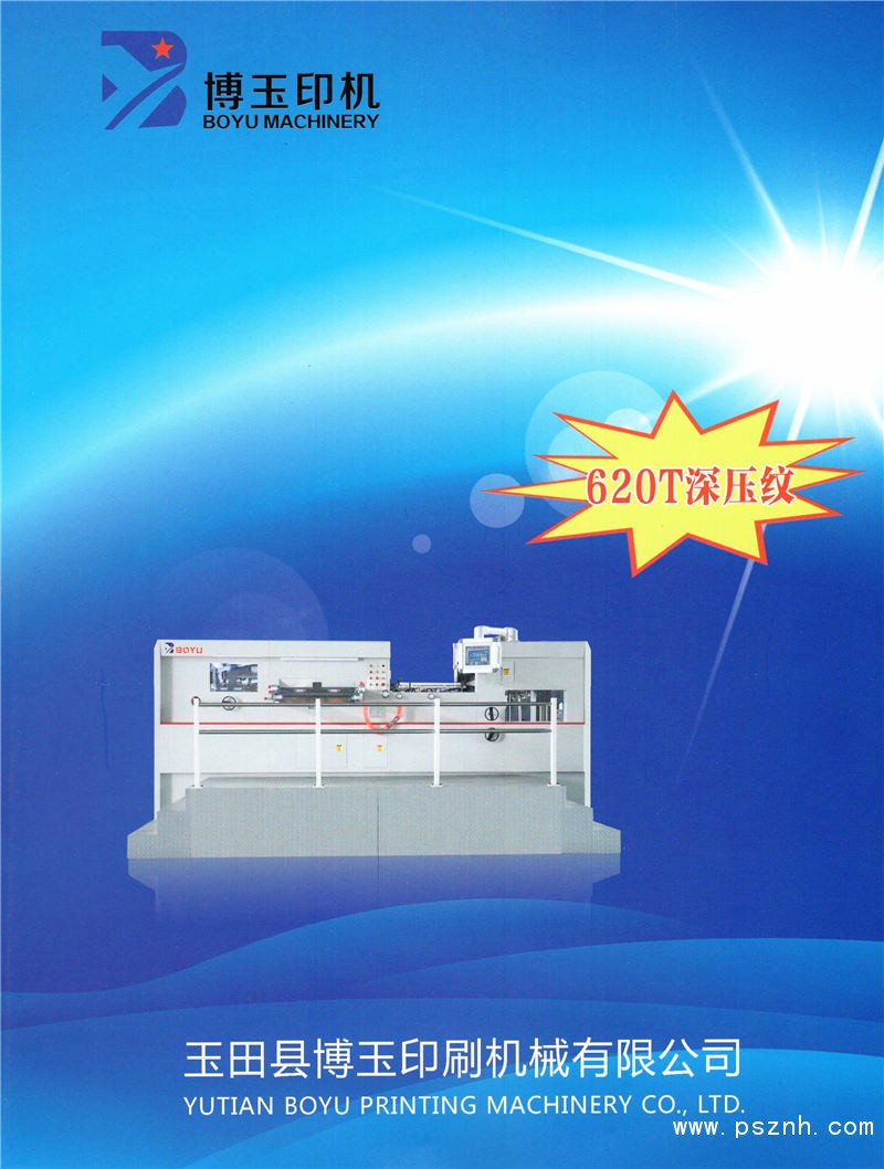 玉田县博玉印刷机械有限公司是集科研、生产、销售、服务于一体,有二十余年专业制造经验,加工设备齐全,售后服务体系健全,在印刷机械行业中享有较高的声誉。长期以来,公司引进高新技术,致力于研究开发新产品及技术改进,并吸取国际同类产品之精华,使企业得到飞速发展。主要产品有BY800模切烫金排废全自动模切机系列、BY720模切机烫金机系列、BY1080模切压痕烫金机系列、BYTC-1100全自动贴窗机系列。