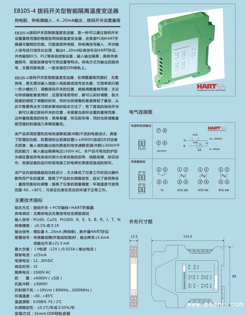 EB105-4导轨安装式智能隔离温度变送器-中性(选型) 上海恩邦
