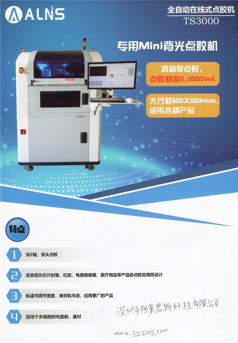 深圳市阿莱思斯集团成立于2011年,主要从事全自动点胶机、高精密点胶机、高速点胶机、Mini点胶机和全自动Molding线的研发、生产和销售等,为客户提供整套液态封装解决方案。应用在半导体封装领域,在高科技的LED、MEMS、电声、PCBA等行业具有领先的技术优势。全体职员肩负着为员工幸福,让客户点赞,创企业辉煌的使命,以创新第一、创造价值为企业的生存理念。拥有6项发明专利,26项实用新型专利,荣获国家高新技术企业称号,并通过ISO9001:2015认证。