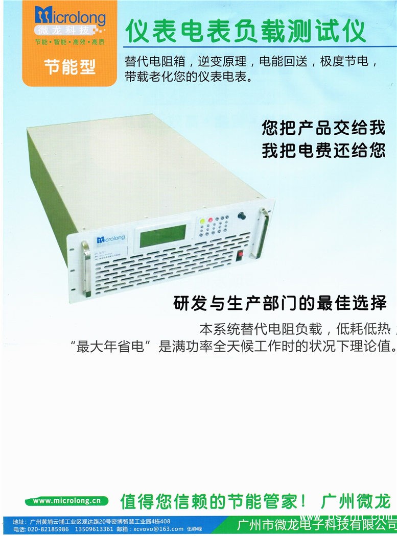 广州微龙节能型电焊机、变频器、电表仪表、新能源汽车充电枪老化系统是成熟、稳定、高效、智能的一级整体架构,相比传统耗能型负载,更方便更准确更实用更安全更节省。本系统符合当今节能环保的世界发展潮流,能完全替代传统耗能型负载,已是众多注重品质的电焊机厂家、变频器厂家、仪器仪表厂家、新能源汽车厂家的理想首选。
