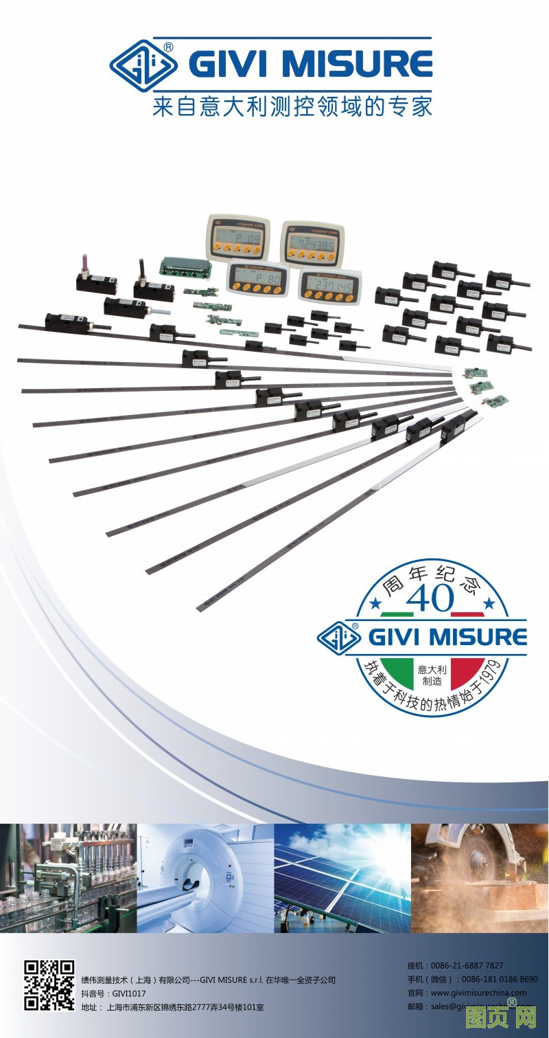 GIVI MISURE s.r.l. 中文名称绩伟测量技术(上海)有限公司,公司在意大利开设有总部工厂,坐落于意大利米兰的诺沃市内,至今已经有近40年的历史,公司是首批通过国际ISO9001质量管理体系认证的会员,是集设计研发,生产,销售,服务于一体的的综合性的专业公司,主要生产高性能的光栅尺,磁栅尺,旋转编码器,数显表,位置控制器和磁性传感器控制系统,应用领域广泛,比如折弯机, 机床,磨床, 铣床, 镗床,压铸机,激光打印切割,玻璃切割,PCB高速铣钻领域等等,产品出口遍布全球,持续不断的研发投入和创新使得绩伟公司可以为全球用户提供质量可靠和高性价比的产品,不断满足客户的个性化差异化需求。